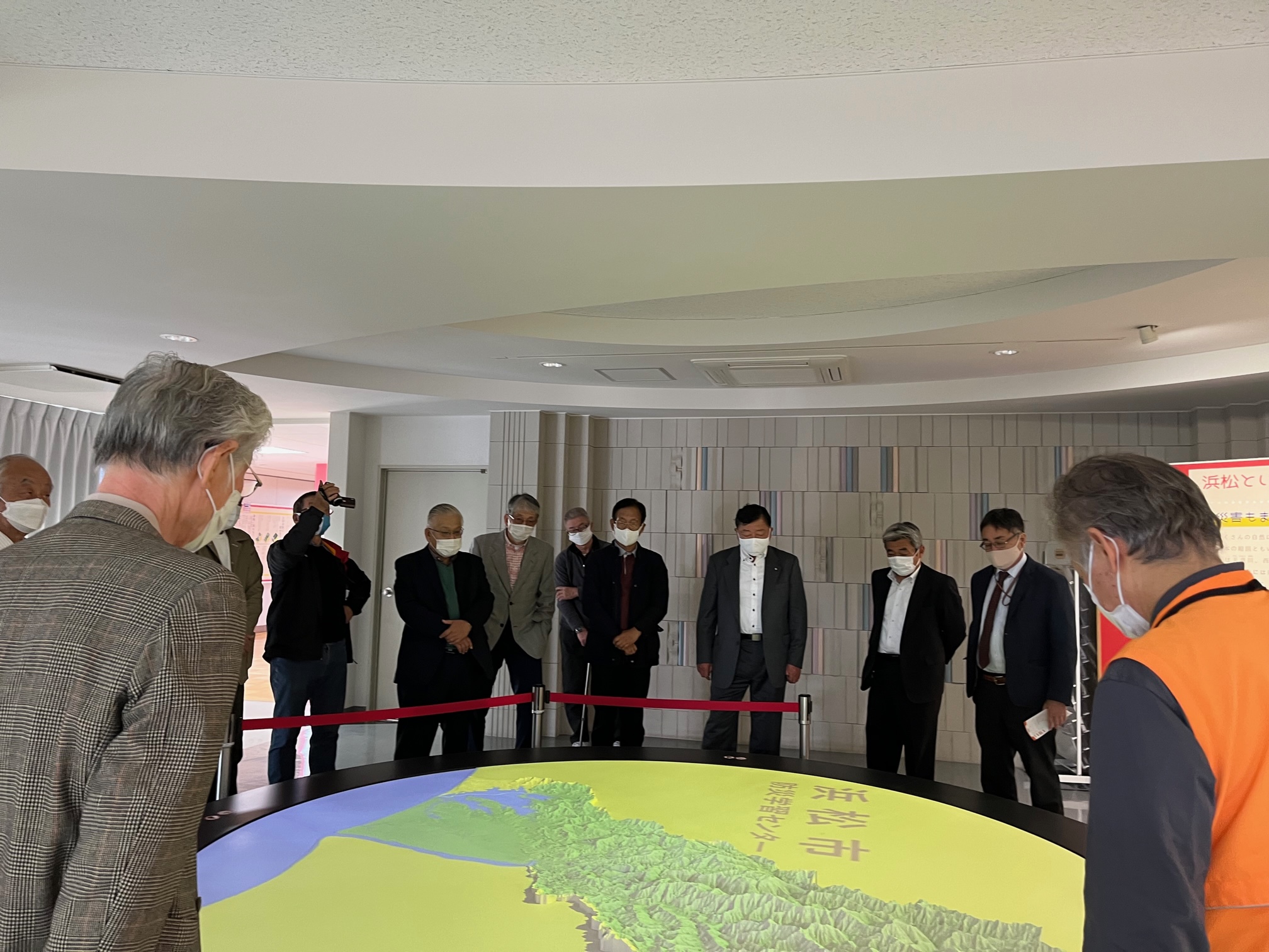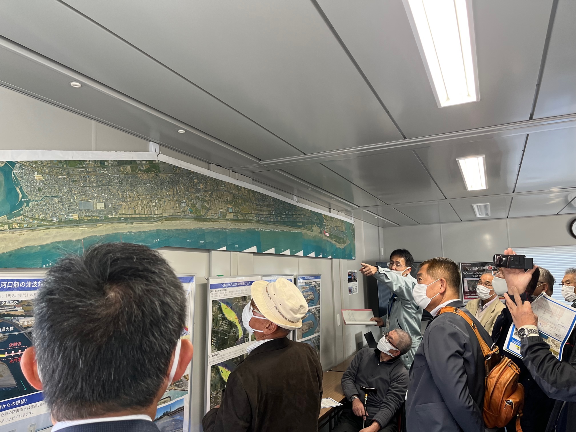浜松市沿岸域における津波対策として、防潮堤の本体は竣工したが、途中には馬込川の河口があり、防潮堤が途切れているため河口から津波が侵入することが想定されることから、馬込川河口部の津波対策として、水門の整備を行っています。 県は2027年度の完成を目指し、高さ8メートルの水門の建設を進めています。 工事現場近くにある水門の役割について知ることができるインフォメーションセンターを見学しました。