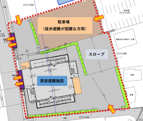 津波による浸水が想定される地域において、地震発生時に住民が一時的、もしくは緊急に避難・退避するための人工施設を言います。 これらは内閣府により平成17年に作成された「津波避難ビル等に係るガイドライン」に沿って整備が進んでいました。 さらに平成23年の東日本大震災の発生を受け「津波防災地域づくりに関する法律」により津波防災対策が制度化されたことで、改めて整理がなされ今日にいたります。