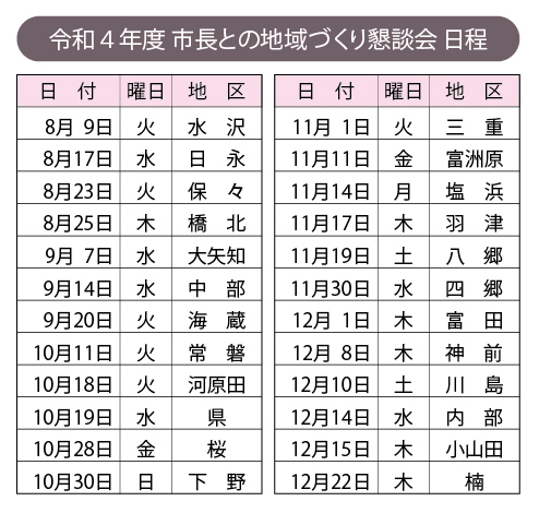 各地区において「市長との地域づくり懇談会」が参加人数を絞り開催されました。
