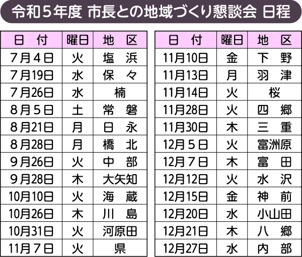 各地区において「市長との地域づくり懇談会」が参加人数を絞り開催されました。