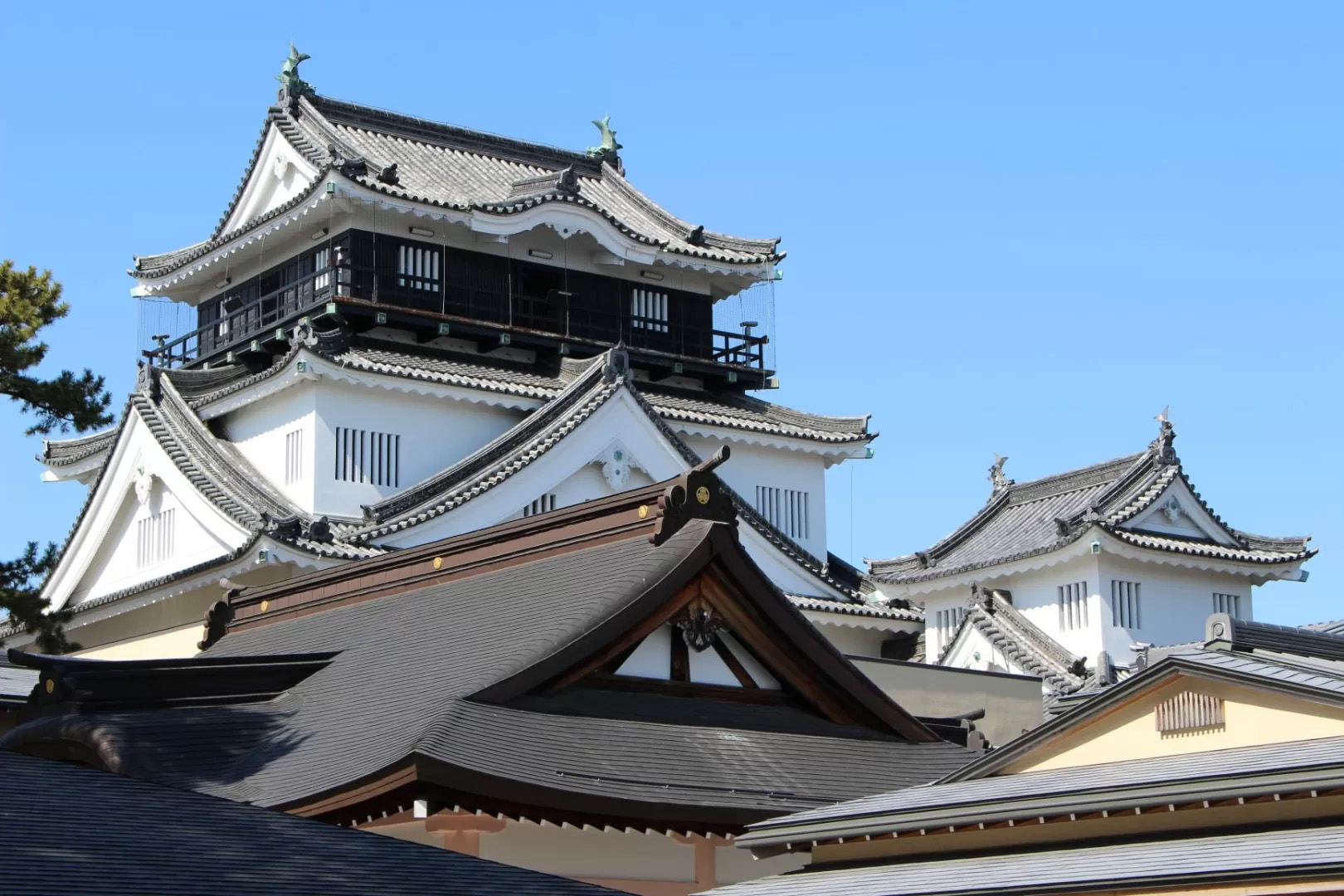 江戸時代、1592年に城の東・北・西に総延長4.7㎞に及ぶ総堀をつくり、1617年には、三層三階地下一階で、東に井戸櫓、南に附櫓のある複合天守閣が建てられ、東海道有数の宿場町として