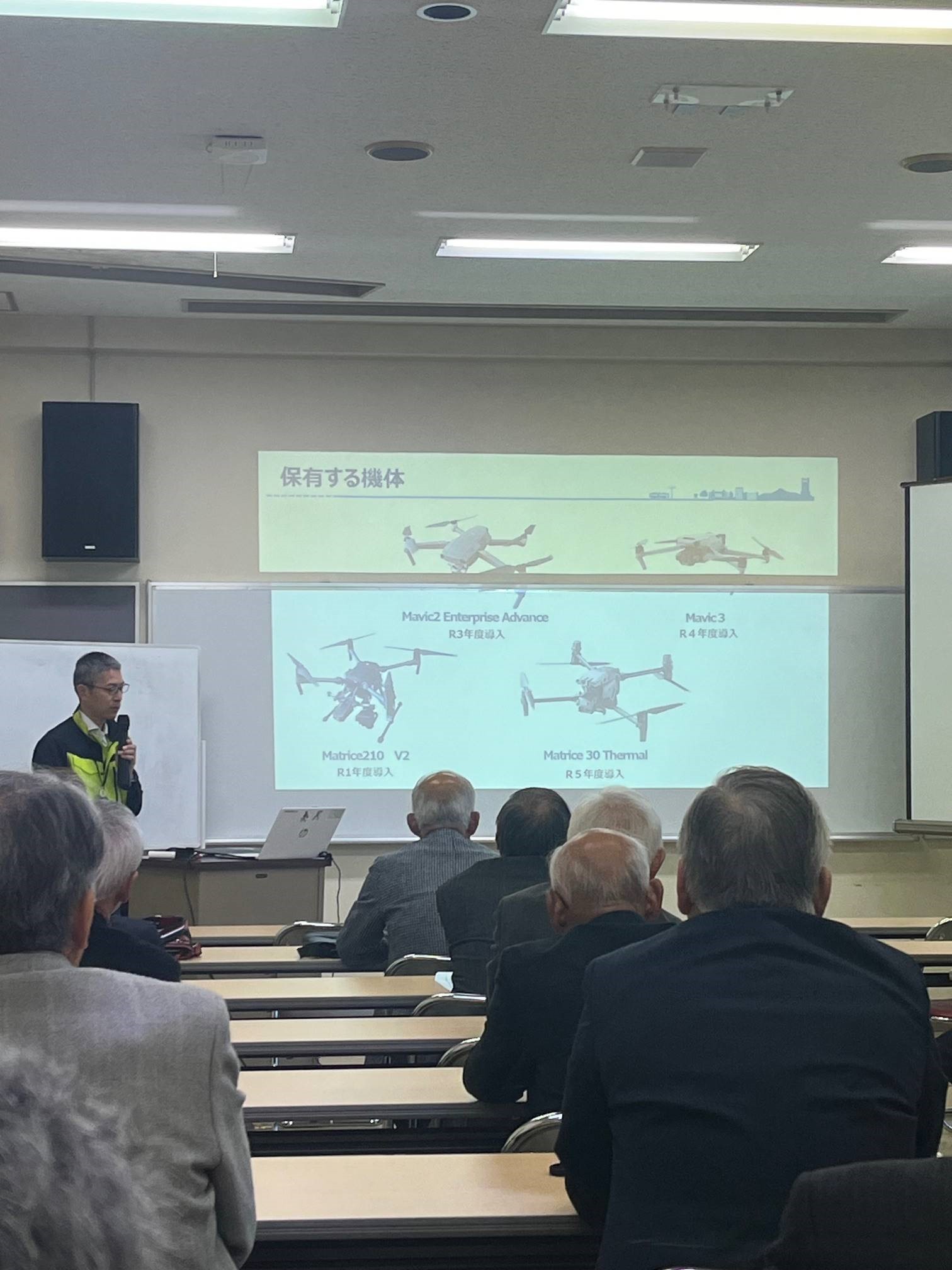 令和6年11月11日に、愛知県豊橋市にドローンを使った防災研修と豊橋市の中心市街地にある まちなか図書館の見学を行いました。