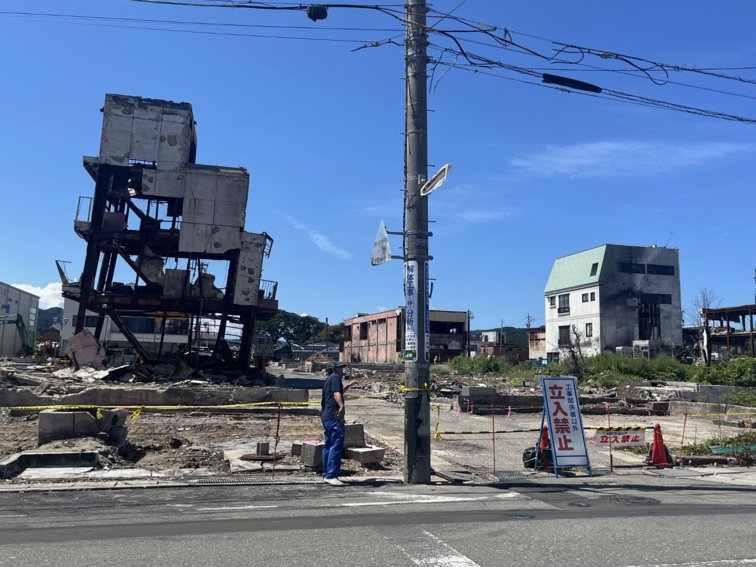 被災してから半年以上経過しても、なかなか復興が進んでおらず、火災にあった朝市の現場も立ち入り禁止になっていて、瓦礫を片付けるのがやっとの状態でした。