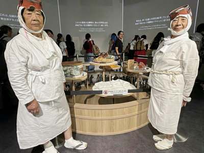 テーマ「食」2000年以上の歴史をもつ伝統的な漁法である海女漁。 三重県は、日本でもっとも多く海女が存在し、その独自の営みは国内外から注目されています。 海女漁のダイナミックな映像を楽しめると同時に、現役海女が来場し、海のこと、海女漁につい て語っていただき、併せて「桑名のはまぐり」「松阪牛」「南紀みかん」など食の宝庫・三重を代表 する食材についても映像で紹介がありました。